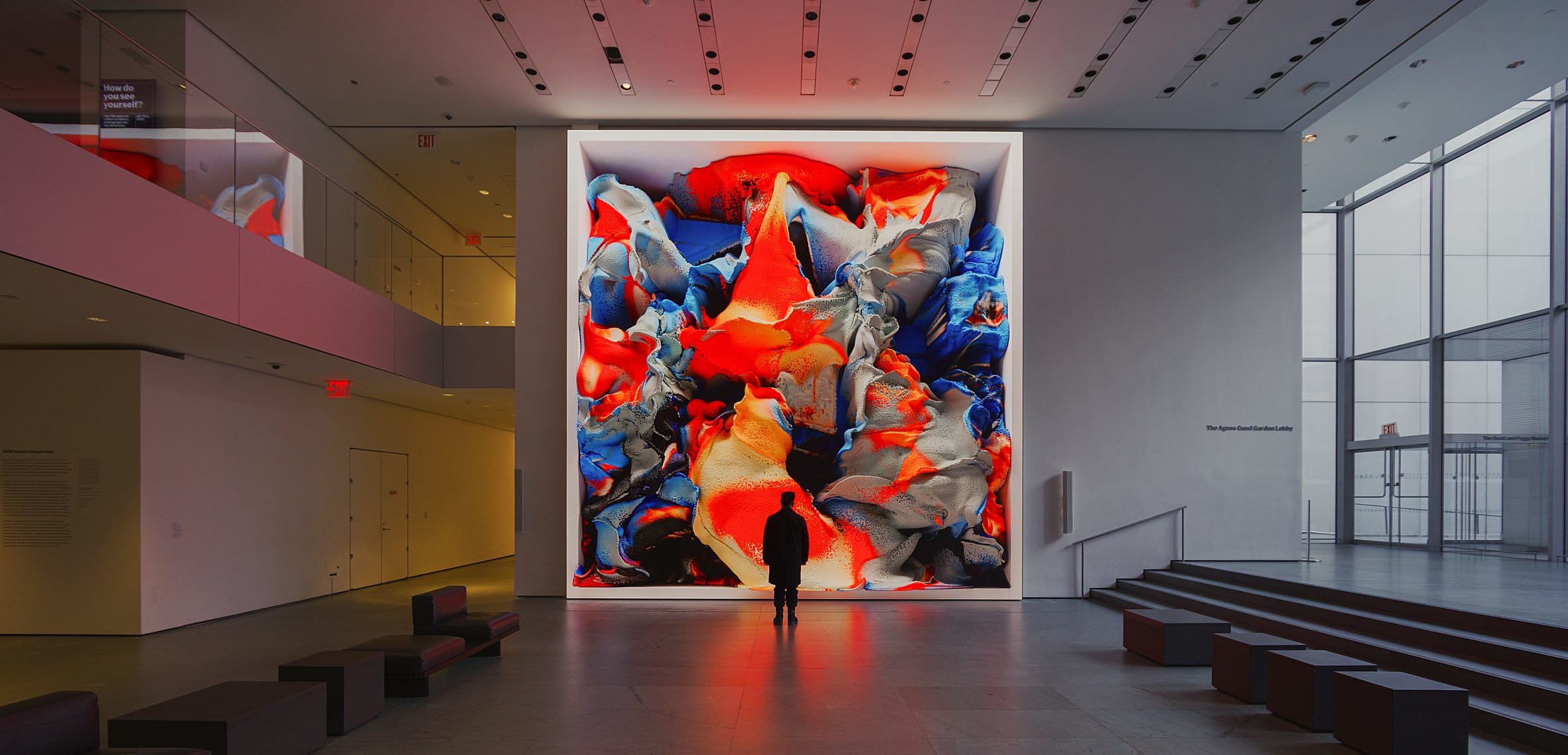 Con este espíritu, Refik Anadol ve la IA como una herramienta al alcance de los artistas. Su interés reside en los algoritmos de aprendizaje automático que no están estrictamente supervisados ??por humanos. Para Unsupervised, se preguntó cómo una máquina, contando únicamente con los datos de la colección del MoMA, podría analizar por sí sola la historia del arte moderno. Y, como autodidacta, ¿qué tipo de arte crearía?