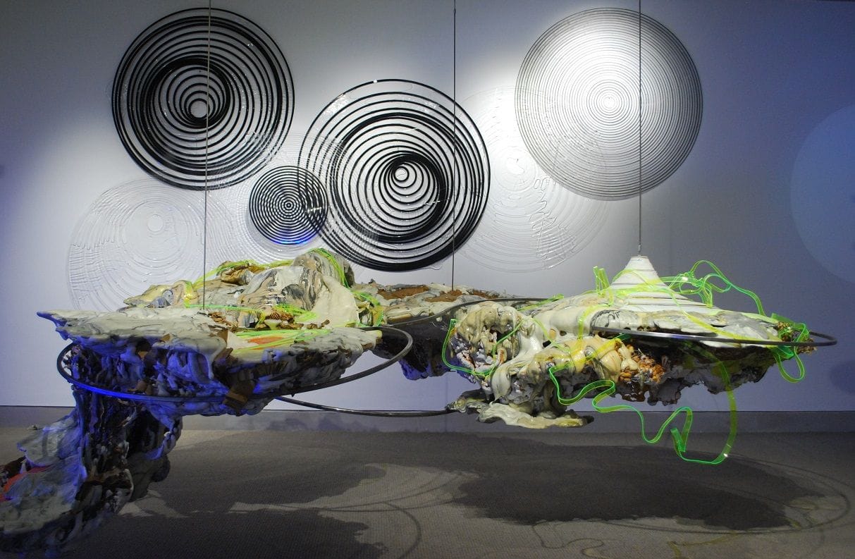 Pionera del arte de instalación en la década de 1970, Pfaff sintetiza escultura, pintura y arquitectura en entornos dinámicos, donde el espacio parece expandirse y contraerse, fluctuando entre lo bidimensional y lo tridimensional. Sus instalaciones in situ atraviesan paredes y se desplazan por el aire, logrando ligereza y una energía explosiva.