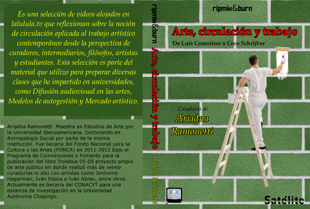 En lalulula.tv se piensa la figura del curador como si fuera la de un DJ, y con esa idea en mente nace RipMix&Burn un proyecto editorial que invitó a curadores y artistas a realizar “video-mixtapes” basándose en el material contenido dentro del extenso archivo del sitio web que abarca miles de temas y en distintos tipos de registros.